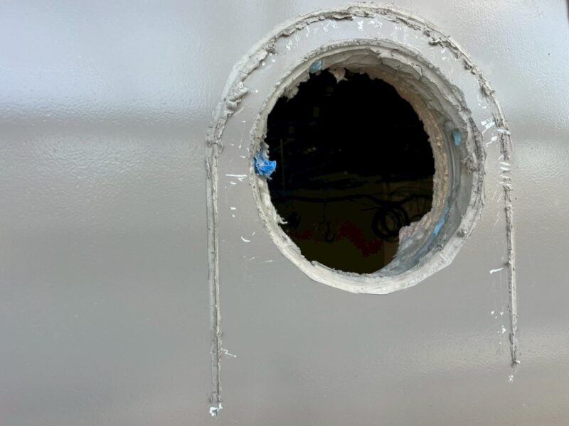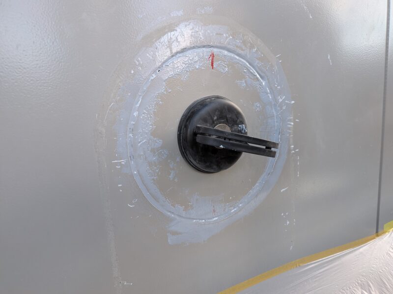 上の写真に見える右側の穴を塞ぎます(左はあたらしくあけなおしたもの)。