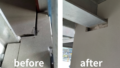 塗った直後ですから艶がありますが、硬化後は同じ艶になります。